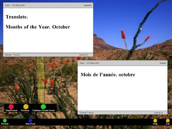 Exambusters on CD presents over 1500 questions and answers written by certified teachers and professional translators with a focus on exam preparation. Highlights essential French grammar, vocabulary, and phrases you need to know to test well. Prepare for quizzes, tests, AP, PRAXIS II, SAT II, CLEP, and N.Y. Regents Level I-III. Helpful for travelers too! Review study cards one by one and eliminate them from your stack once you've learned them. Take a sample quiz, mid-term, or final and keep track of test results as you progress. Learn subliminally with "Screen Saver Mode." Topics: Basic to intermediate French grammar, sentence structure, forming negatives, adjectives, verb tenses, conjugation of regular and irregular verbs, translations, and over 300 vocabulary words. . . . A COURSE on a CD!